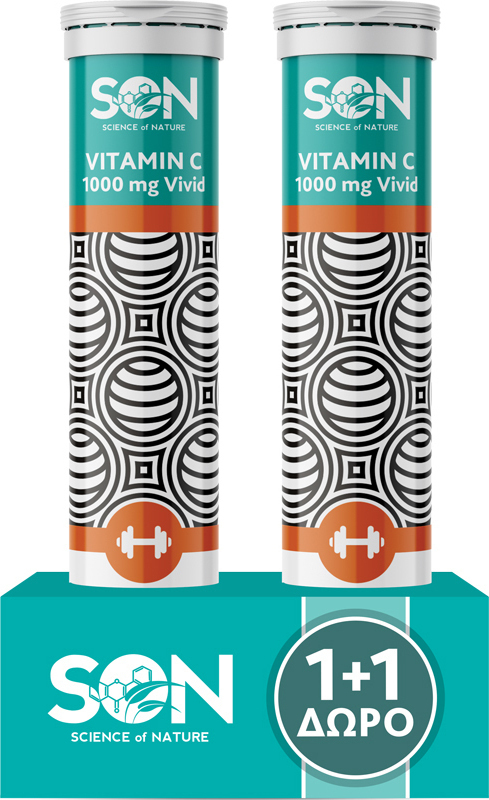 Η βιταμίνη C 1000mg Vivid της SON είναι συμπλήρωμα διατροφής. Διατίθεται σε αναβράζουσα μορφή για εύκολη λήψη με γεύση πορτοκάλι.