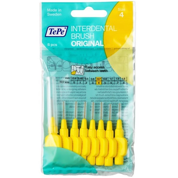 Τα μεσοδόντια βουρτσάκια Tepe Interdental Brush Original έχουν εργονομική λαβή που τα καθιστά πιο εύχρηστα και πρακτικά. Το μεταλλικό τμήμα τους είναι πλαστικοποιημένο για μεγαλύτερη άνεση και αποφυγή γαλβανικού ρεύματος αλλά και οποιασδήποτε βλάβης των εμφυτευμάτων. Κάθε συσκευασία περιλαμβάνει 8 μεσοδόντια βουρτσάκια TePe και ένα πλαστικό καπάκι που χρησιμοποιείται για να προστατεύει το βουρτσάκι αλλά και για να επιμηκύνει τη λαβή.